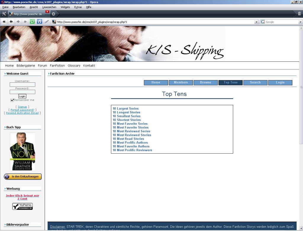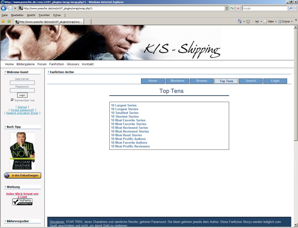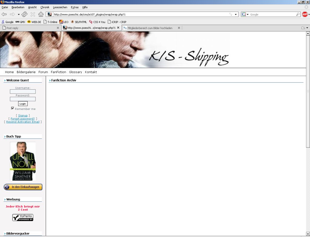 Did you call the Fanfiction-Archive on my website KS-Shipping Community? If yes, it worked with you? If yes again, why does work with you and why not with me? I did clear the Cache and I deleted all the Cookies, but it still shows me the empty page.